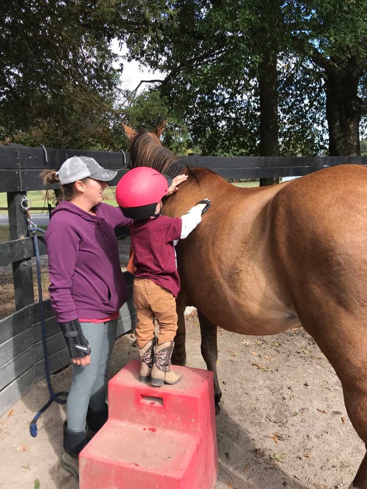 Sessions always started with groundwork which allowed students to develop a relationship with the horse. Relationship-building is extremely important with children experiencing trauma and/or behavioral/emotional issues. The nonverbal communication, herd mentality, sensitivity, and “mirroring” abilities of horses allows them to be ideal candidates for building relationships with children who have difficulty trusting based on past experiences. By designating the same horse and instructor for each session, it provided stability and an opportunity to build a stronger trust relationship with the students. Students would slowly work their way up to riding which would help enhance their bond with the horse they were working with and help improve self-confidence. Farm chores were required after each session in order to help students develop work ethic and this provided an opportunity for instructors to challenge negativity and poor conduct in the students to improve behavioral issues.